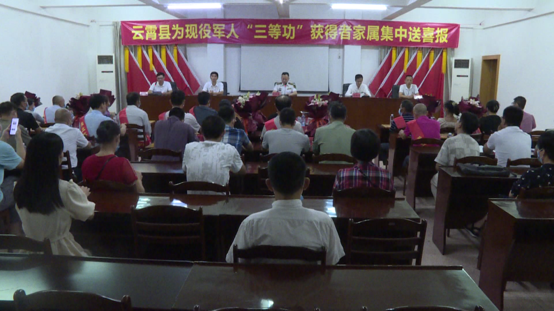 本网讯(张湉 方阗 朱乔柽) 八一建军节来临之际,我县举行为现役军人“三等功”获得者家属集中送喜报活动,为全县11位立功的现役军人家属送上立功喜报和慰问金,并向他们送去党和政府对军人家属的关怀与问候。活动中,县人武部政委吴南华代表驻云部队、全体云籍官兵向立功军人及家属表示热烈祝贺,并向奋战在强军事业一线的官兵及家属和广大退役军人表示崇高敬意,致以节日问候。