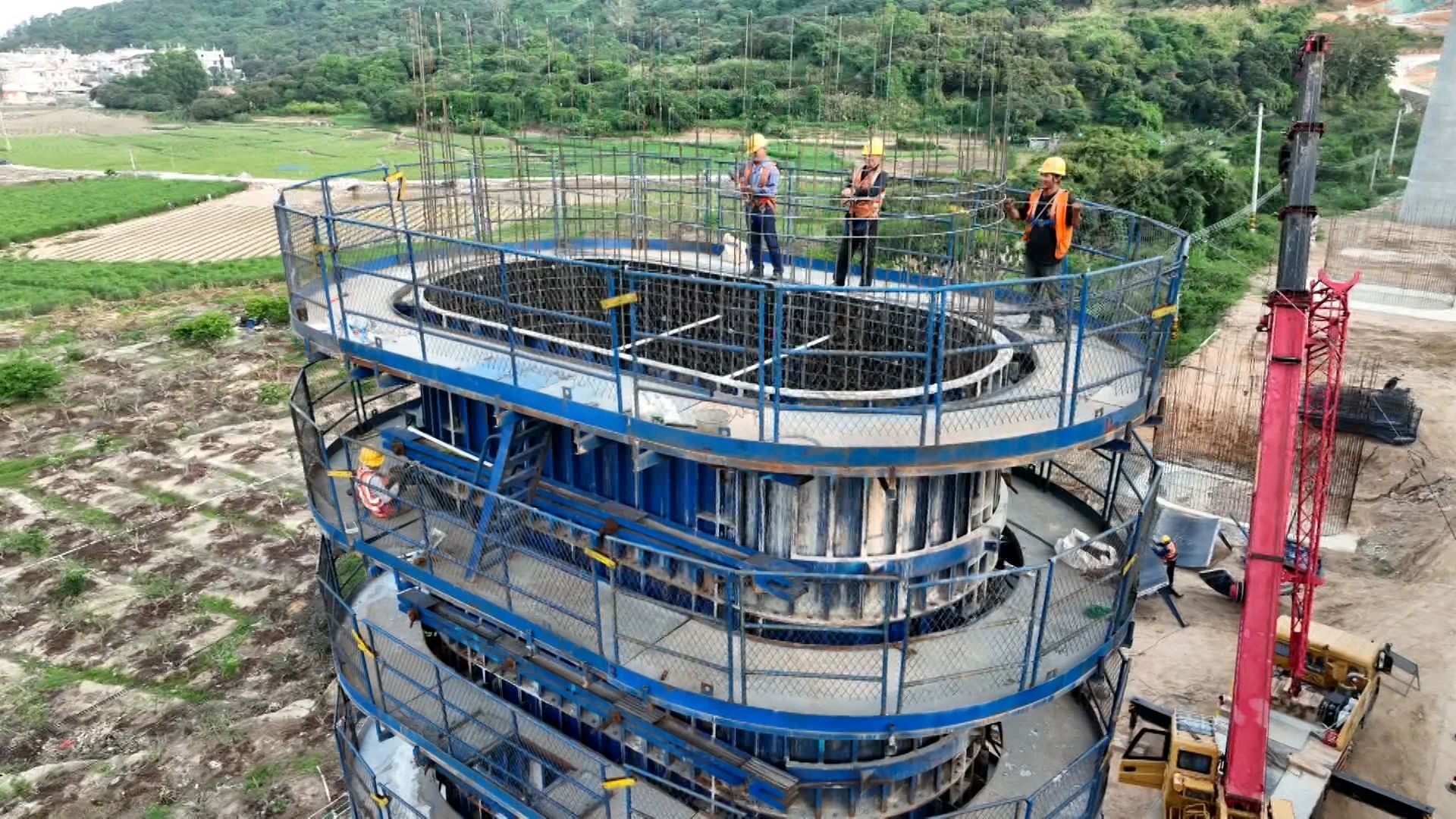 “目前9号墩正在进行墩身模板安装作业,17号墩正开展混凝土浇筑施工。整体工程进度已达75%,项目团队正全力推进,力争在8-9月按期完成墩台身施工任务,确保优质高效完成年度建设目标。”漳汕高铁青径特大桥项目施工现场负责人李富刚介绍。