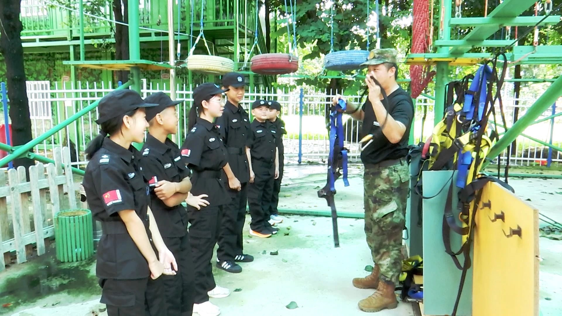 参加研学的孩子们认真听教练讲解中