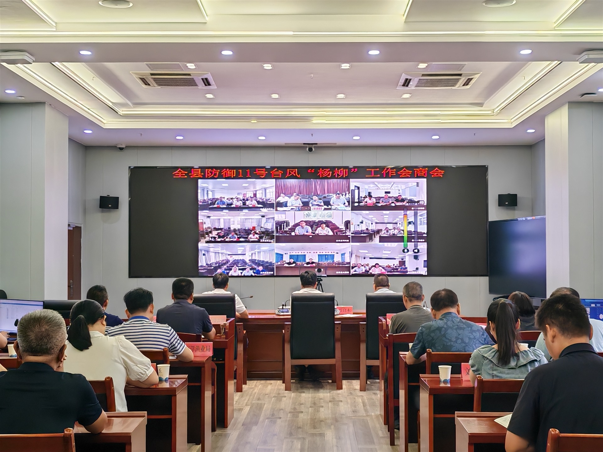 全县防御第11号台风“杨柳”工作会商会会议现场