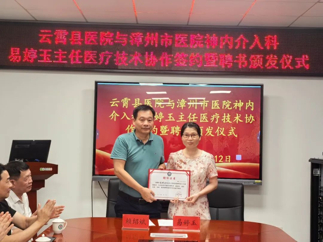 为推动优质医疗资源下沉,提升神经介入学科诊疗水平,让云霄百姓在家门口享受优质医疗服务,近日,云霄县医院与漳州市医院神经介入科主任医师易婷玉达成医疗技术协作,通过精准技术帮扶,为当地神经介入诊疗注入新活力。