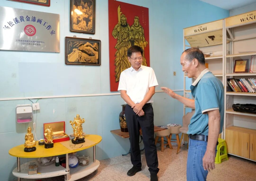 本报讯(郭扬 吴锡坤)9月16日,云霄县委书记蓝良木调研非遗保护传承工作。他强调,要深入学习贯彻习近平总书记关于文化遗产保护传承的重要论述和在福建考察时的重要讲话精神,以更加强烈的责任感和使命感,赓续历史文脉、焕新非遗光彩,推动优秀传统文化创造性转化、创新性发展,为富美新云霄现代化建设注入强大文化力量。