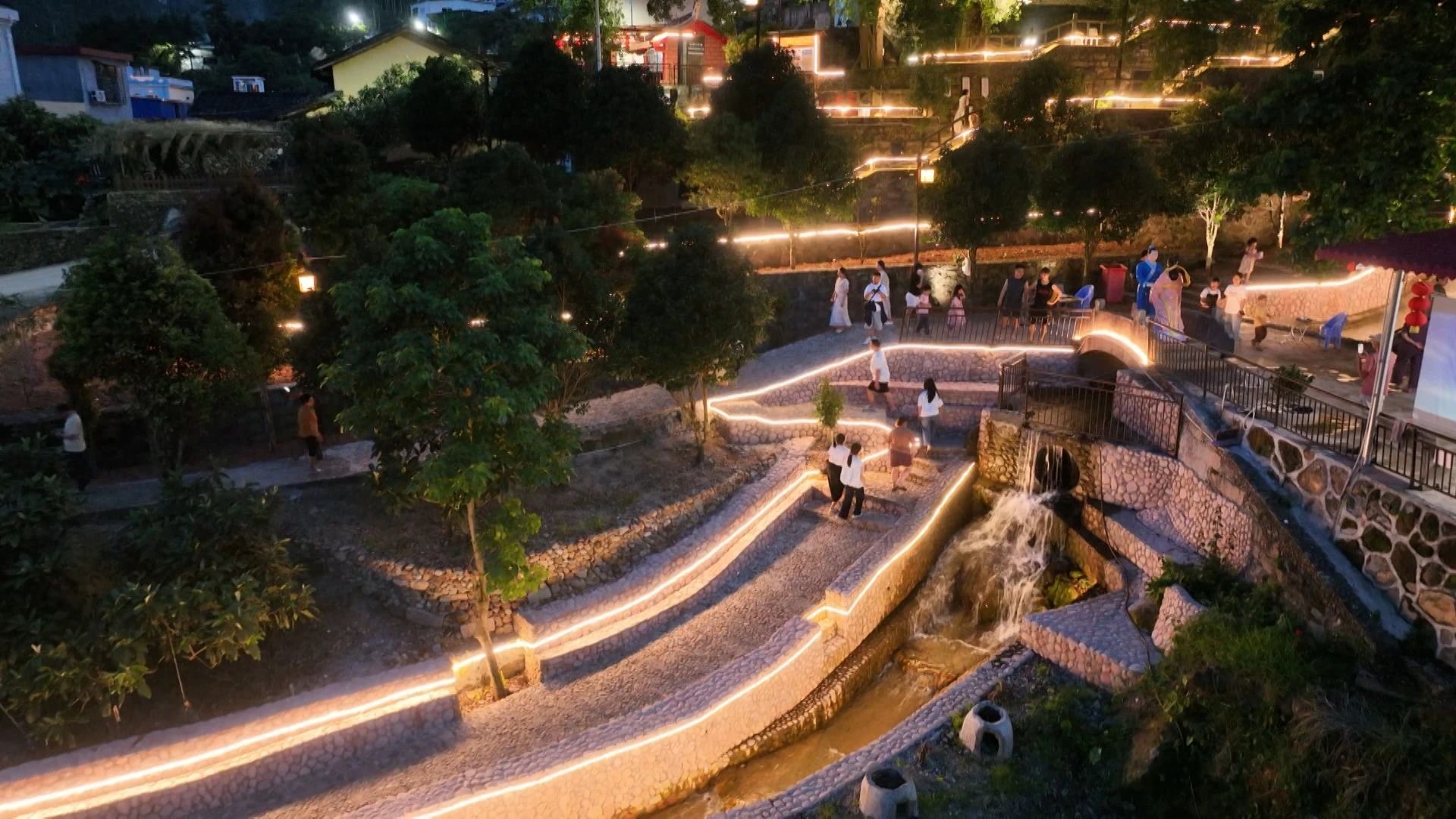 本报讯(汤金梅 方阗 刘亮真 林酽 郭妤涵 )近年来,和平乡棪树村紧扣人居环境整治提升主线,以“清新底色、精准治理、农旅融合”为突破口,深度挖掘“中国枇杷之乡”产业内核与文化IP,构建“农业+旅游+文创”融合生态,系统性推进全域生态提质与产业升级。走进棪树村,空气自然清新,潺潺水声清脆悦耳。利用对穿村溪流实施“活水兴村”工程,棪树村堆砌了6层天然叠瀑,植入鱼鳞坝、喷泉等互动设施,构建出“清泉叠翠、光影交织”的立体水景体系,再搭配造雾装置与夜景灯光,让棪树村焕发出新的生机与活力,勾勒出一幅美轮美奂的夜景画卷。