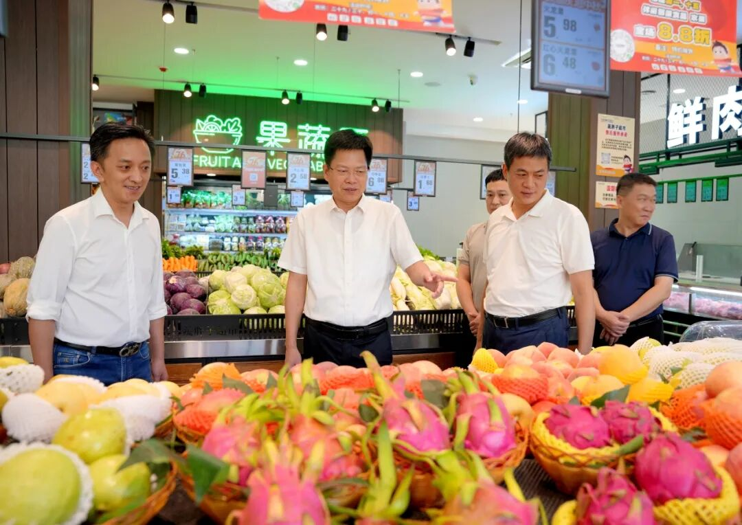 在蔬胖子超市,县领导详细询问生鲜肉品、粮油果蔬等产品稳价保供情况,现场指导推进消防安全工作。县领导要求,要守住舌尖安全关,加强民生商品供应和市场监督管理,确保群众“米袋子”“菜篮子”物丰价稳;要抢抓消费黄金期,大力推动云霄“土特产”“地标味”进商超,让全县假日消费市场热力升腾。同时,要筑牢消防安全防线,加强商户及员工安全教育,真正防患于未“燃”。