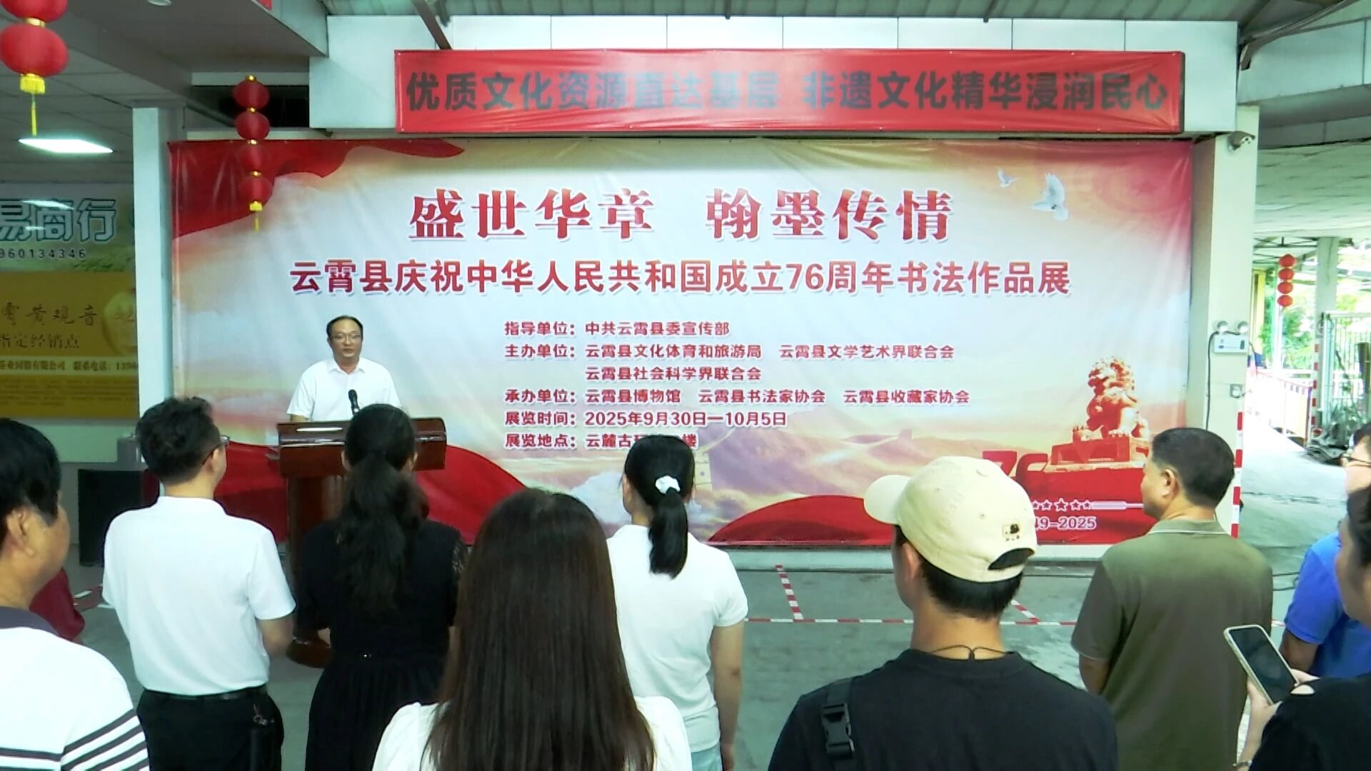 本报讯(林艺斌)9月30日,“盛世华章 翰墨传情”庆祝中华人民共和国成立76周年书法作品展在云麓古玩城开展。本次活动由中共云霄县委宣传部指导,云霄县文化体育和旅游局、云霄县文学艺术界联合会、云霄县社会科学界联合会主办,为期6天。