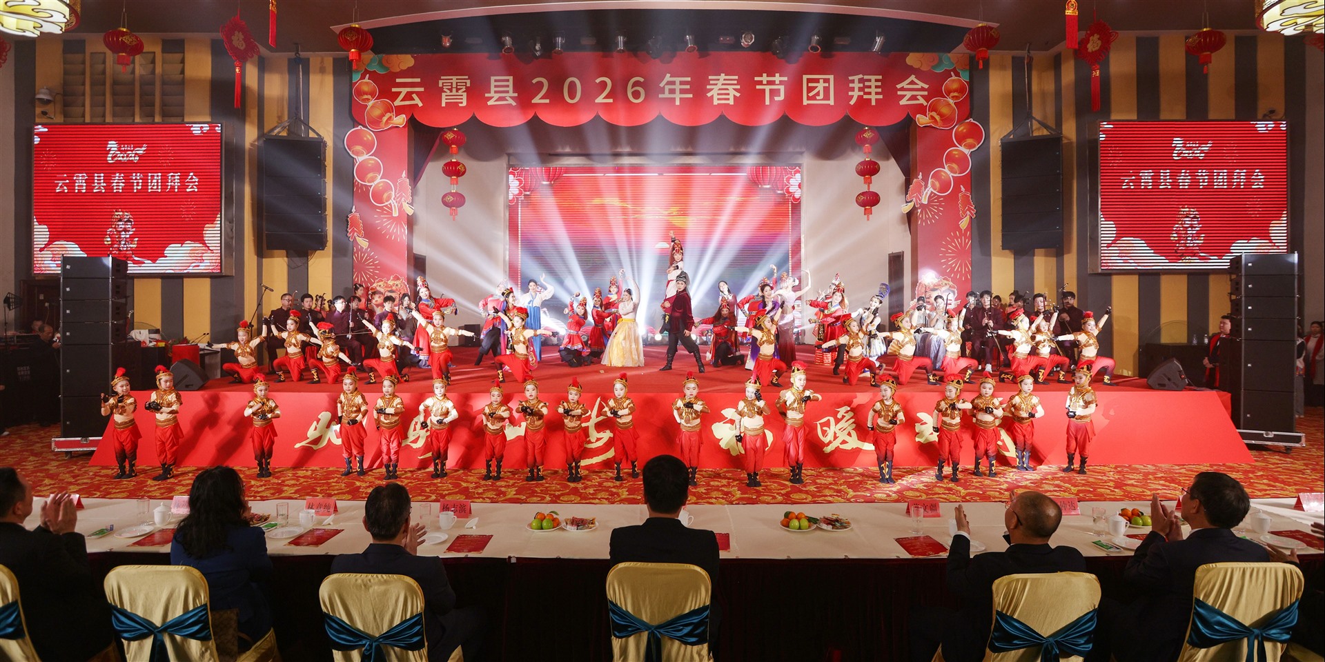 团拜会上,云霄文艺工作者表演了精彩的节目。器乐《赛马》奏出福马当先的争先锐气;歌曲《梦在春天如愿》满载对云霄美好未来的憧憬与展望;音诗画《云霄这五年》深情回眸“十四五”,绘美“能源新城、文明古郡”新蓝图;潮剧《古郡潮声》古韵悠悠、尽显风流;歌舞《云霄年》发出“来云霄、过大年”的热情邀请。整场演出内容丰富多彩,台下掌声不断、笑声连连。云霄干部群众在喜庆、祥和、欢乐的浓郁氛围中,一同奔向充满希望的2026年。