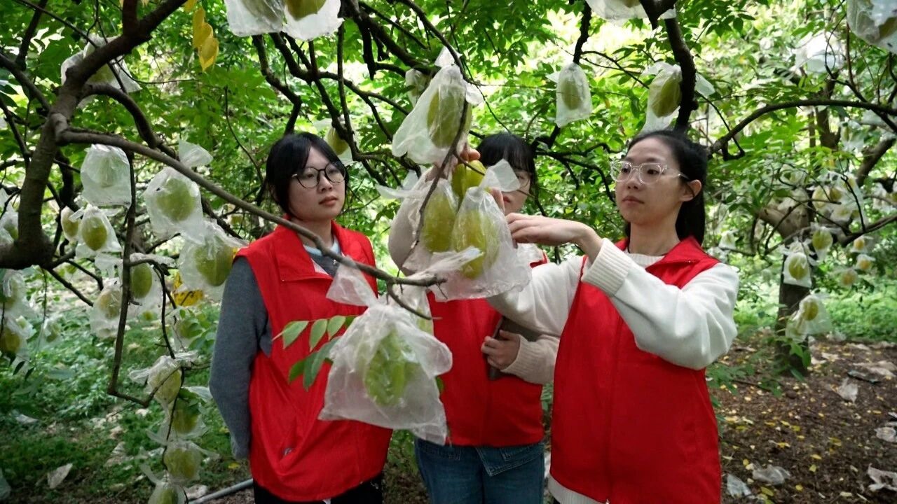 “当初老乡们看着满树的果子,都舍不得疏果。于是我们联合下河村村委会,选定5棵果树做对比试验,每天在果园里按照科学方法疏果。到第二年丰收时,试验树上的果实又大又均匀,老乡们亲眼看到了实效,现在都主动来找我们学习技术。”蔡佳琪说。