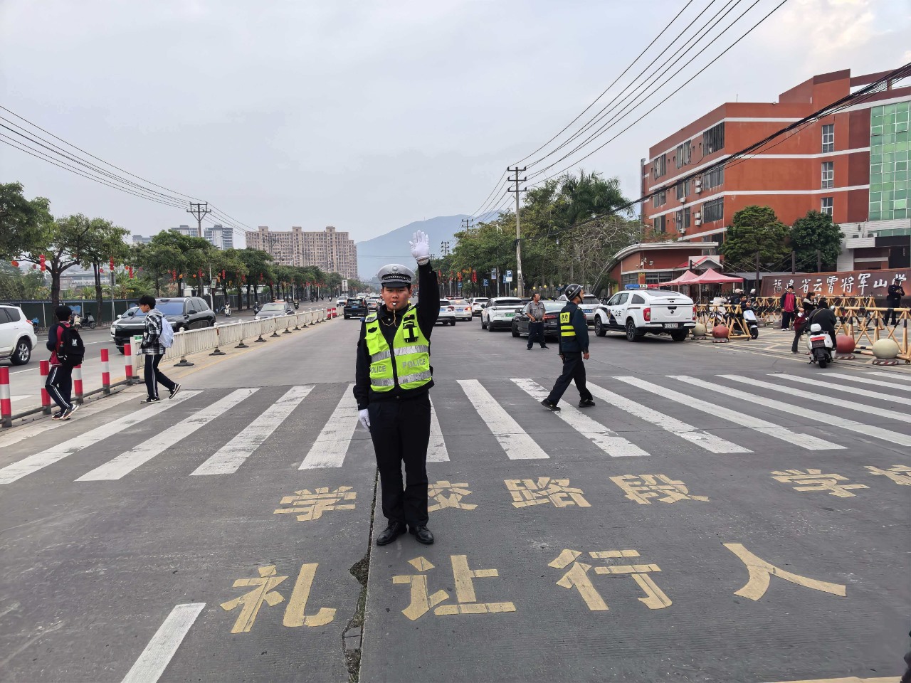 站好护学岗。大队针对早中晚高峰时段车流集中特点,执勤民辅警提前到岗,在各中小学校周边重点路口、路段指挥疏导交通,护送学生安全过马路,积极疏导周边滞留违停车辆,提醒学生家长即停即走,同时,严查乱停乱放、逆行等交通违法行为,切实维护校园周边秩序,全力保障师生出行安全,让广大师生和家长感受到实实在在的安全感。