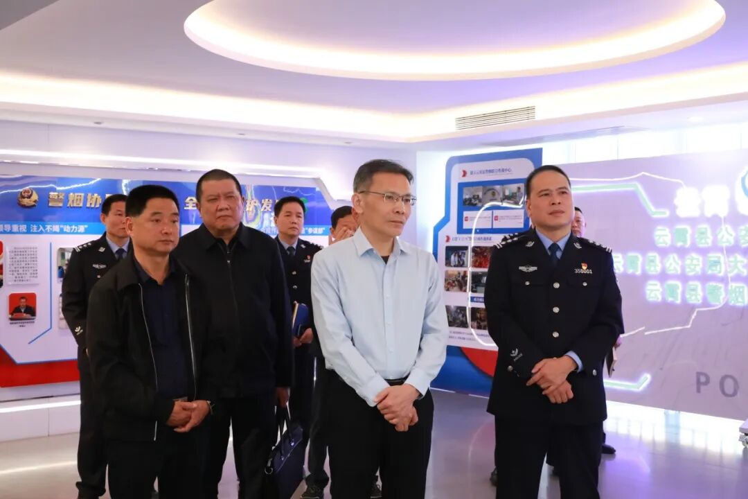 在县公安局,杨志滨一行参观了化风文化中心、警烟联合作战中心,对公安机关在维护社会稳定、服务发展大局中取得的成效,以及广大干警展现出的昂扬斗志和优良作风给予充分肯定。杨志滨强调,要围绕中心任务,做好维稳工作。自觉将公安工作置于全县发展大局中谋划推进,全力以赴防风险、保安全、护稳定、促发展、惠民生,以新安全格局保障新发展格局。要聚焦工作重点,严厉打击涉假涉诈。针对群众反映强烈的治安突出问题,特别是卷烟打假、电信网络诈骗等违法犯罪,始终保持严打高压态势,全领域全方位筑牢反诈打假防线。要强化队伍建设,提升警务水平。始终把政治建警摆在首位,树立和践行正确政绩观,锻造忠诚担当、本领过硬、作风优良的公安铁军。