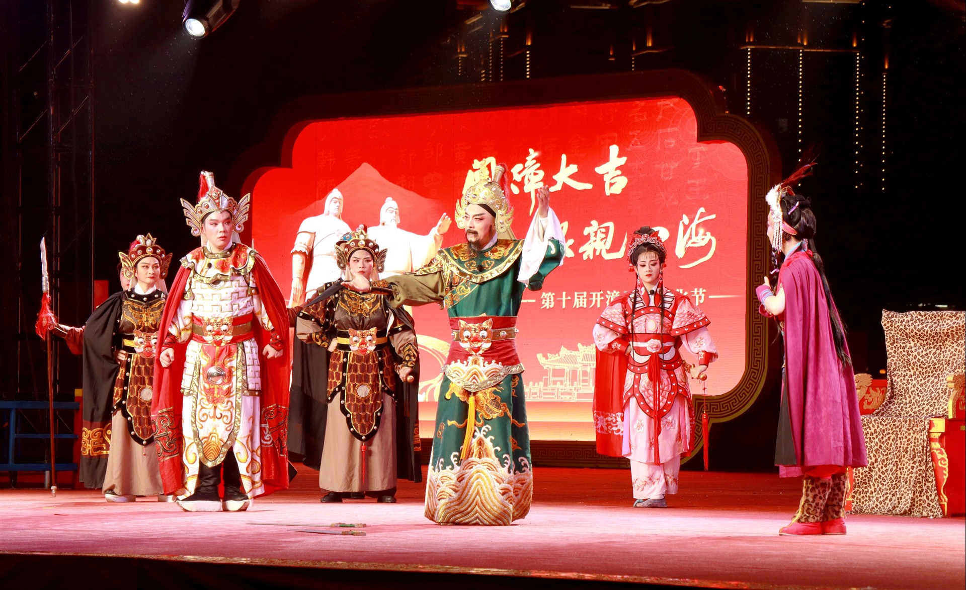 本报讯(郭扬 吴锡坤)古郡“潮”韵,声动云霄。4月3日晚,大型潮剧《开漳圣王》亮相第十届开漳圣王文化节,在将军山景区首次演出,以恢宏舞台重现开漳历史,用潮音古韵唱响根脉乡情。县委书记、常山开发区党工委书记蓝良木,县长、常山开发区管委会主任杨志滨,常山开发区党工委常务副书记林福泉、县人大常委会主任黄文疆、县政协主席林意纯到场观看演出。