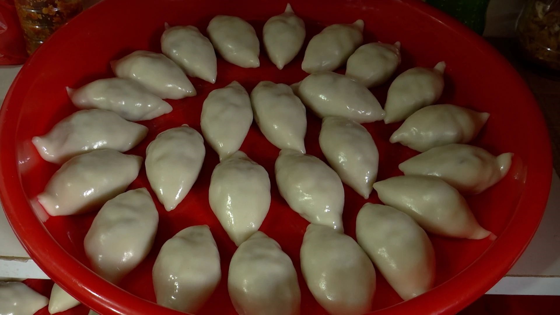 万事俱备后,村民们开始上手将粿皮放在手掌中,把咸鲜十足的馅儿料放在粿皮中间,从中间向旁边封粿皮,一颗胖乎乎的蒜粿就成型了。