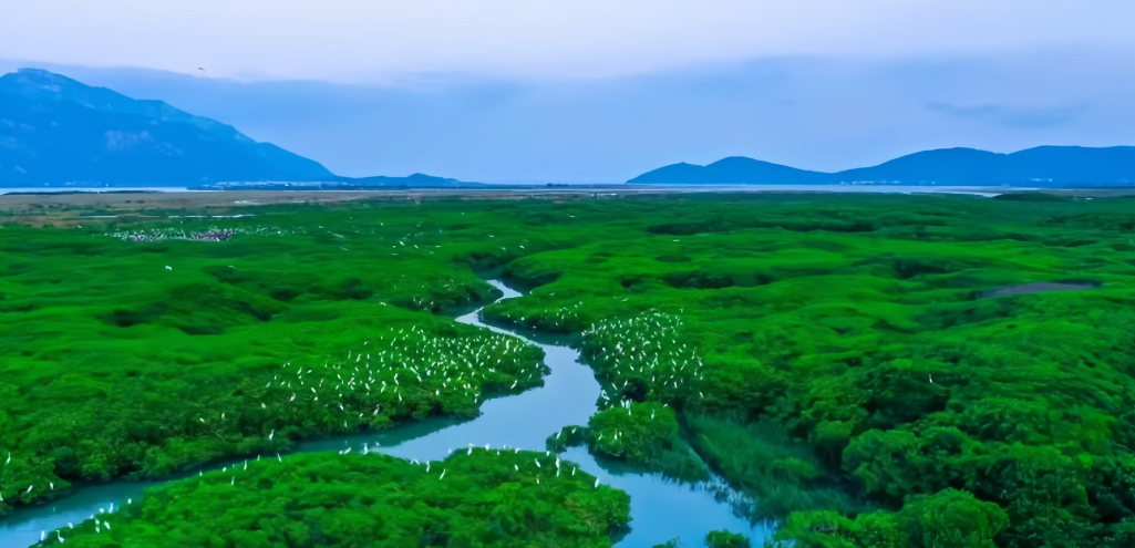 万千水鸟翱翔嬉戏,草木葱茏绿意满屏。漳江口红树林国家级自然保护区是我国北回归线以北面积最大的天然红树林群落,是福建省首个国际重要湿地。