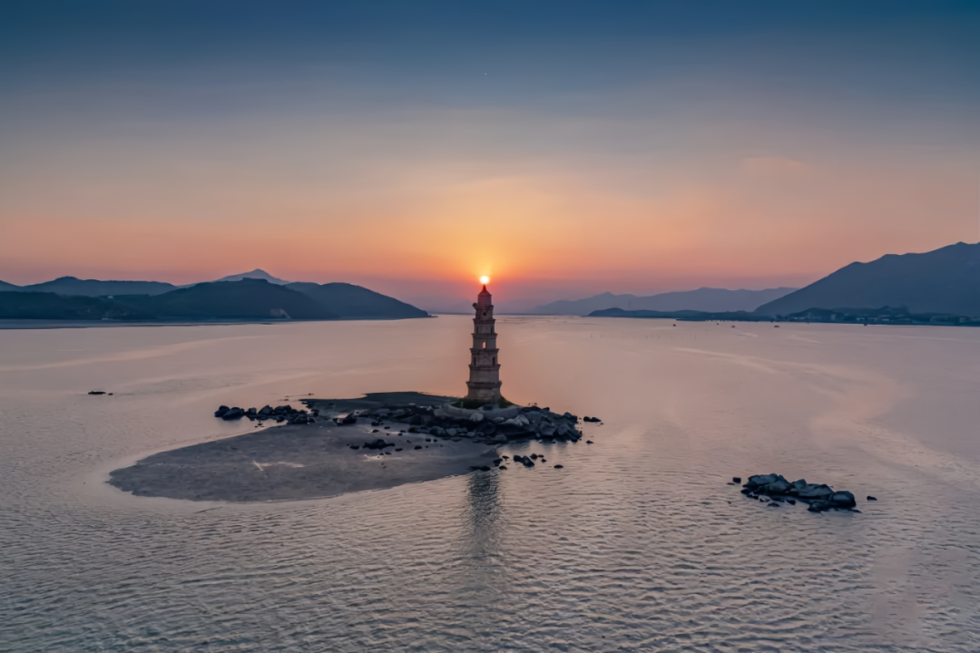 江影古塔相映,石帆塔傲然海天,三百载风雨未改其姿。