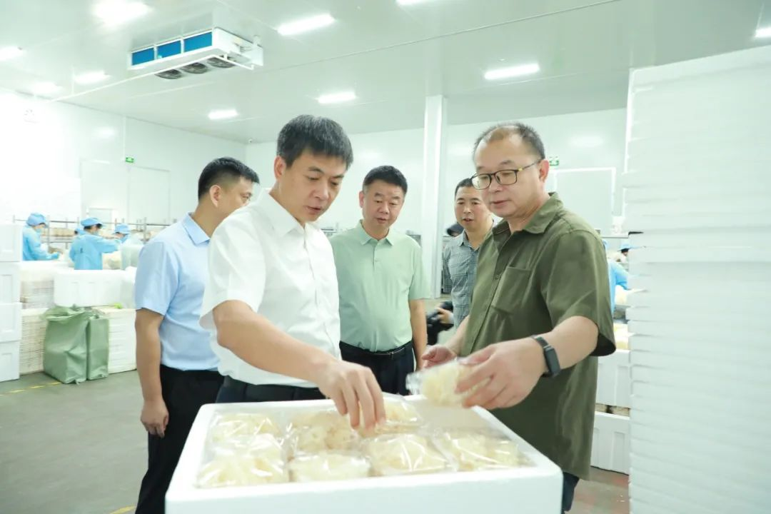 沈顺来一行详细了解食用菌生产加工、发展规模、运营管理、经济效益等情况。