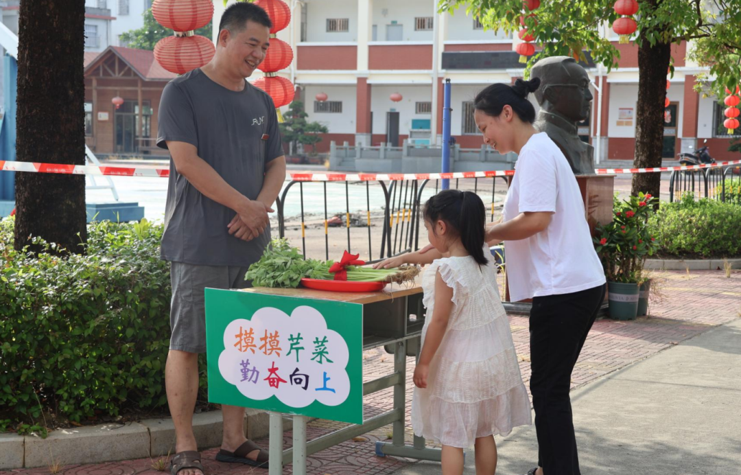 9月1日,云霄县第二实验小学举行了一场别开生面的“入学礼”。校门口,一张铺着红纸的长桌格外醒目,上面整齐摆放着青翠的大葱、嫩绿的芹菜、红彤彤的苹果、黄澄澄的橙子……每一样物品都承载着一个美好的寓意。孩子们兴奋地伸出小手,依次触摸这些寓意吉祥的物件,在有趣的互动中悄然种下新学期的目标。
