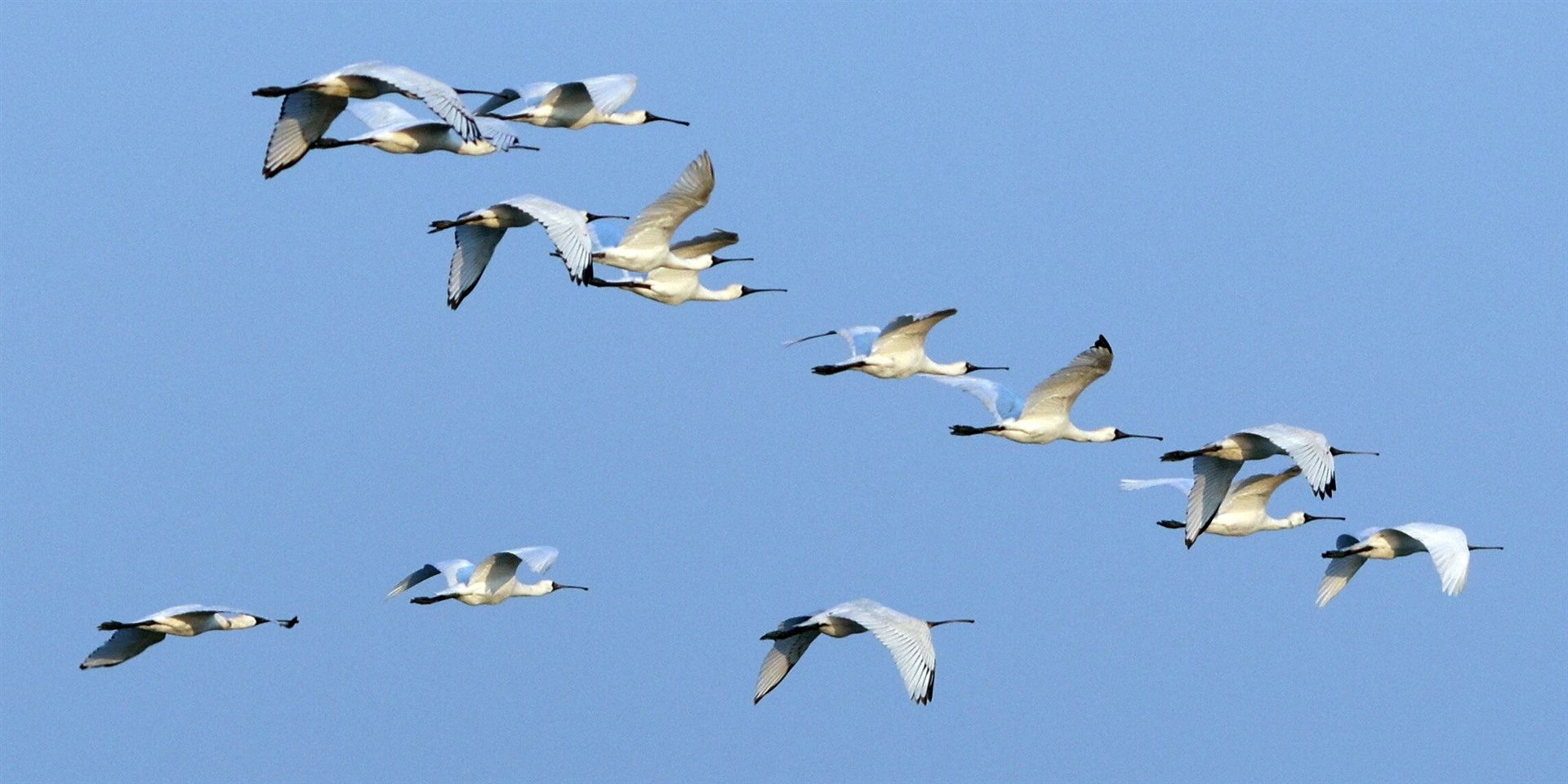 保护区工作人员与观鸟爱好者在开展越冬水鸟监测时发现,20余只黑脸琵鹭顺利飞抵这里、展翅翱翔,这标志着漳江口红树林保护区新一轮候鸟迁徙季正式开启。