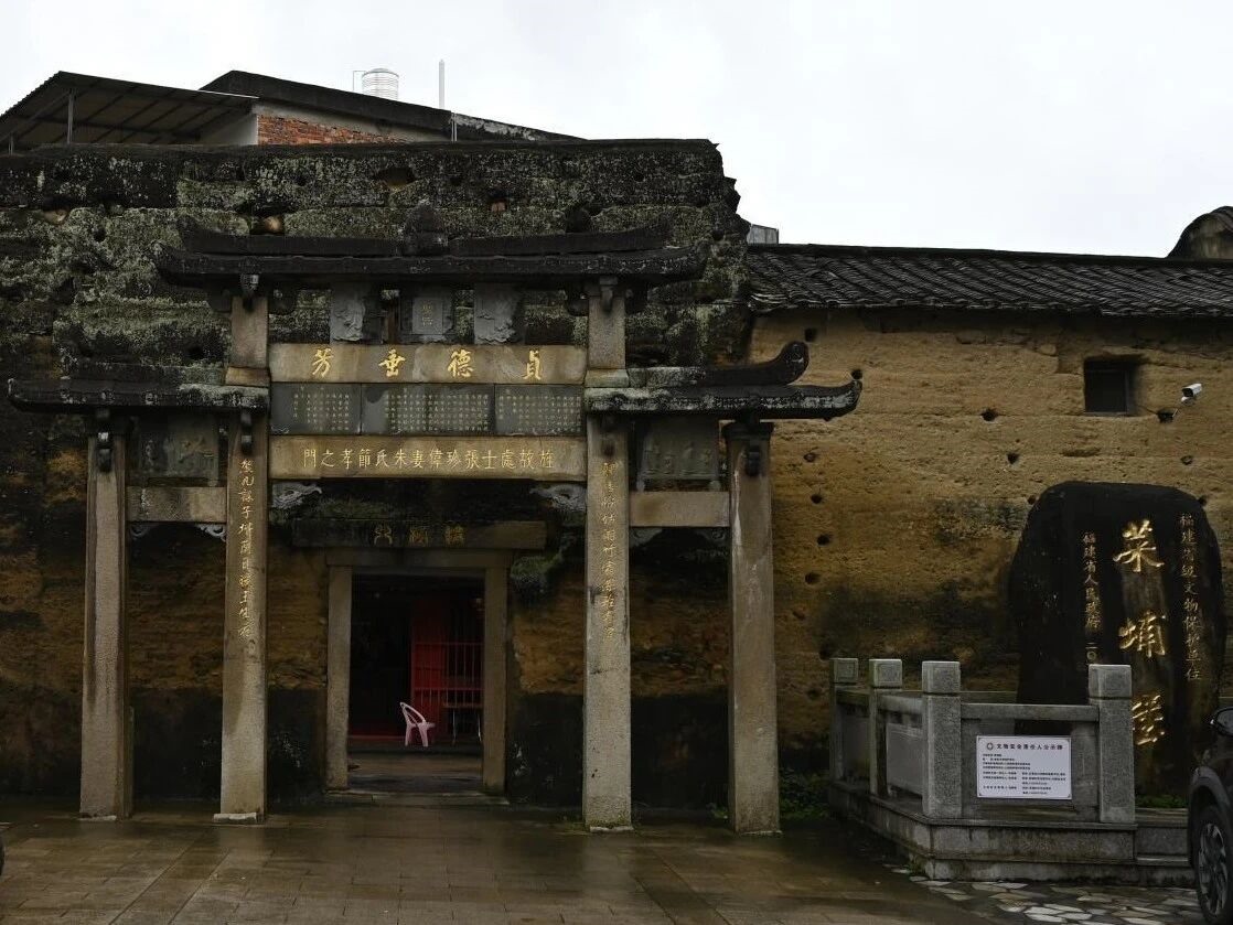 在菜埔堡北门外,屹立着明天启五年敕建的“贞德垂芳”石坊。这座四柱三间式石砌牌坊,是为旌表张士良祖母朱氏而建。据《云霄厅志》记载:“朱氏新安里人,儒士张珍伟妻。伟亡氏寡,年甫二十,养姑抚子,茹蘖五十年。”朱氏二十岁守寡,在极其困苦的条件下,坚持奉养婆婆、抚育幼子,“课子任甑底之生尘,奉姑怜机声之带月”。