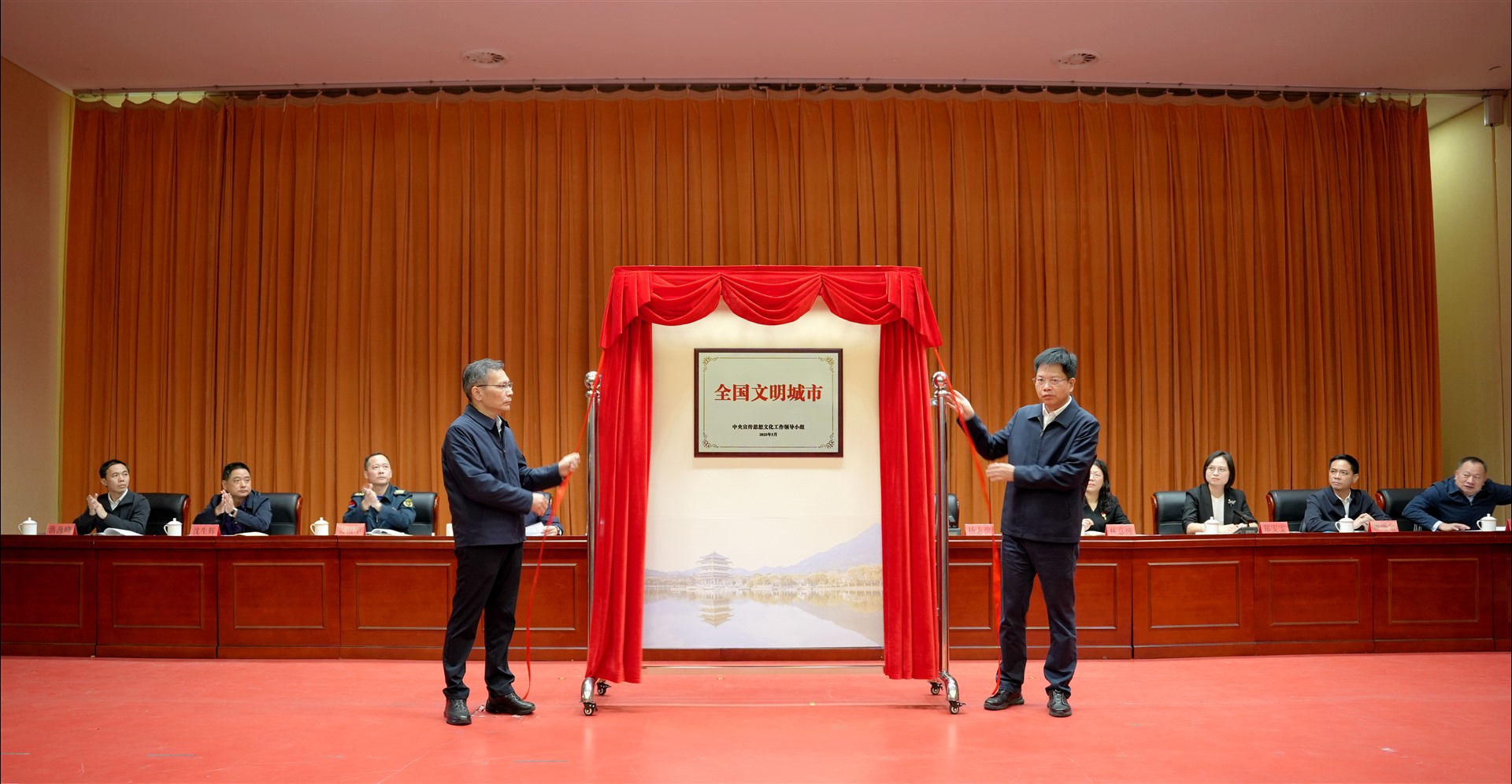 蓝良木、杨志滨共同为“全国文明城市”揭牌