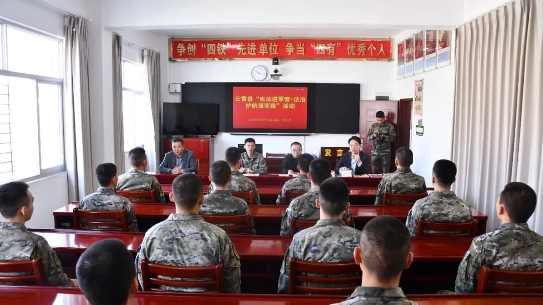 为深入学习宣传宪法,增强官兵法治观念与依法维权能力,12月5日,云霄县退役军人事务局联合县司法局走进武警云霄中队,开展“宪法进军营——法治护航强军路”主题宣传活动,为部队官兵带来一场内容丰富、实用性强的“法治盛宴”。