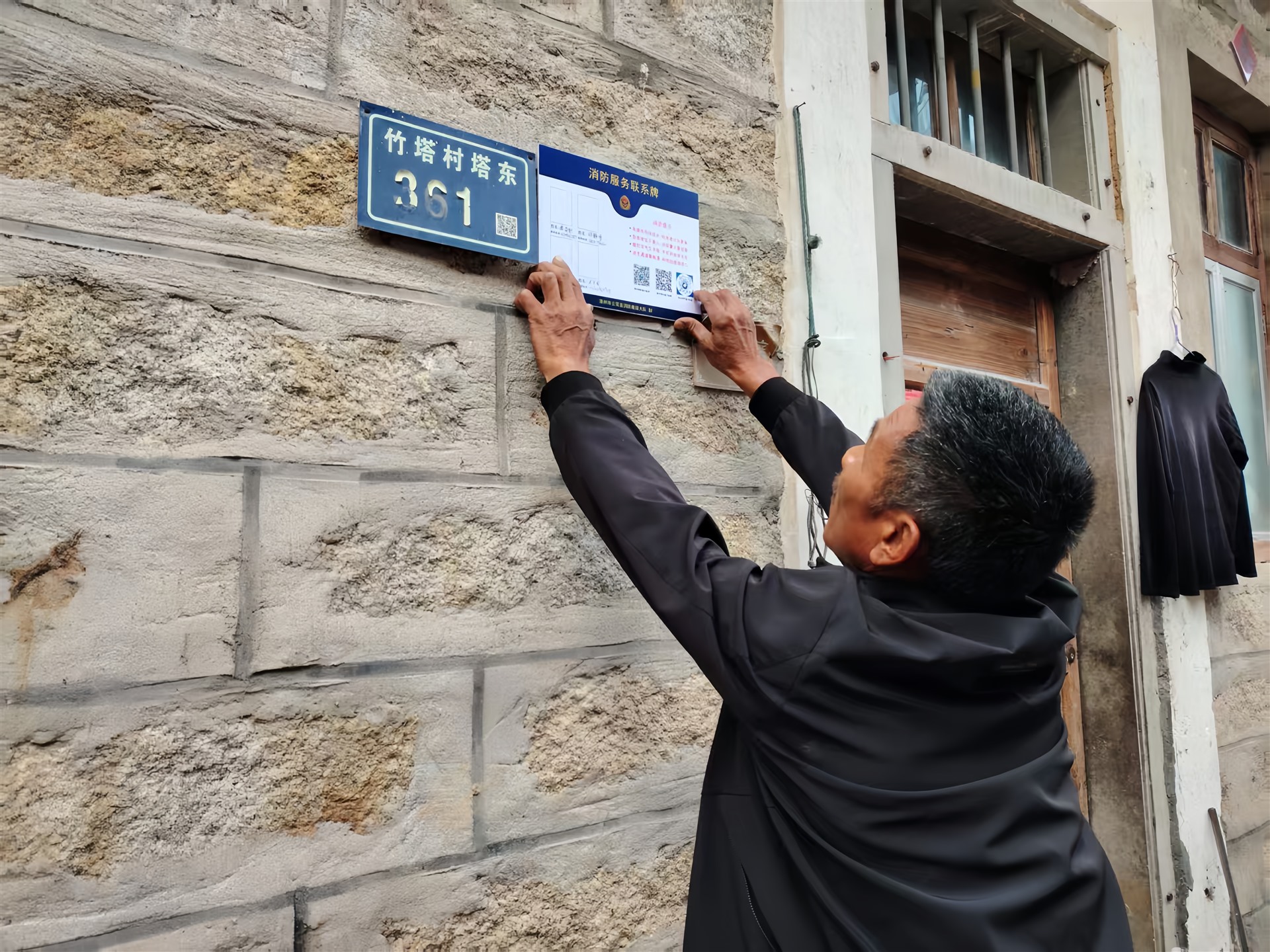特殊住户贴上统一样式的“消防服务联系牌”