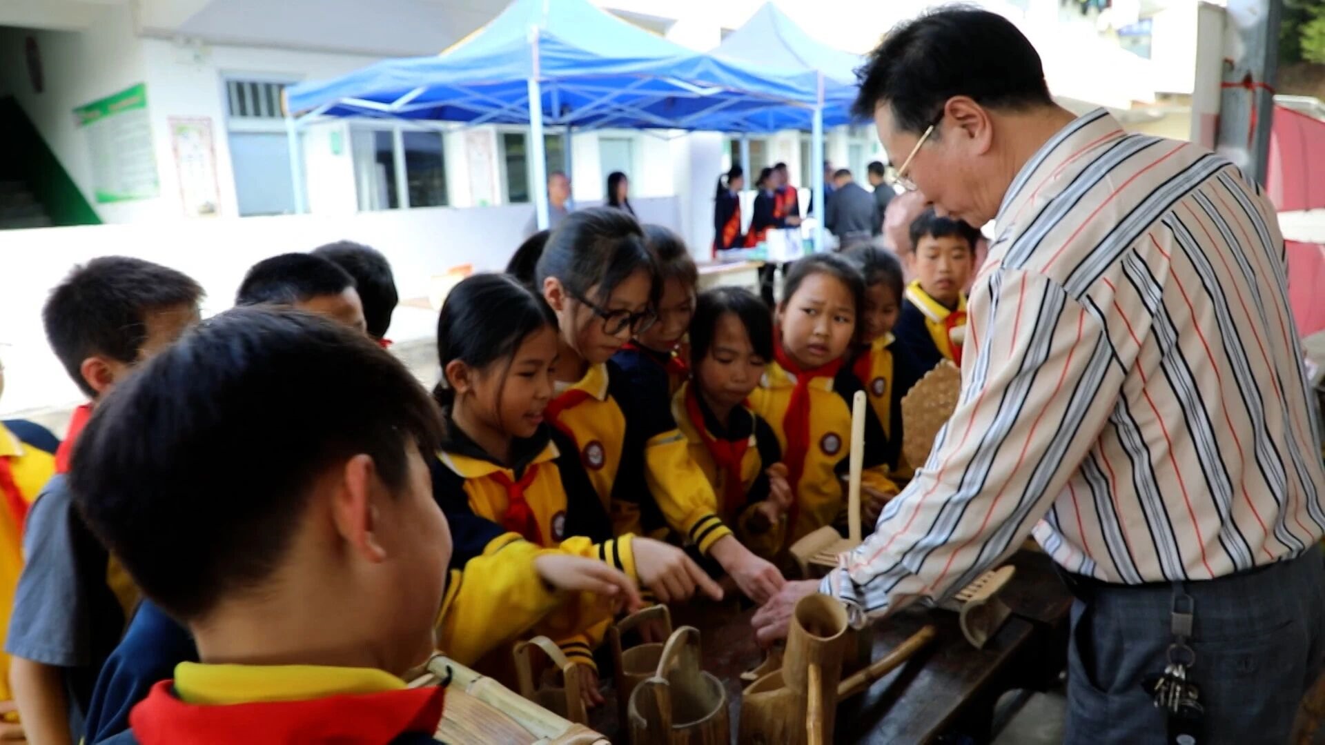 孩子们参观“非遗”竹器制作技艺
