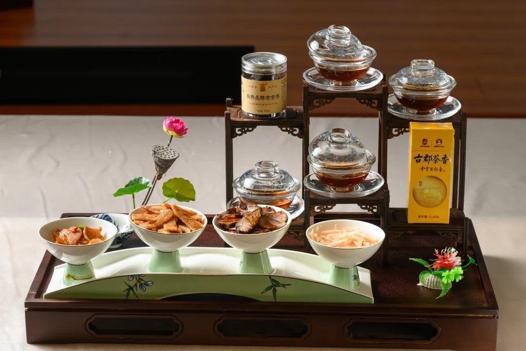 金枣是云霄名果,经特殊工艺腌制数年,有理气化痰、消食健胃之效。当年中原将士初至闽南,多受水土不服、腹胀腹泻之苦。百姓献上本地老金枣,帮助将士们祛消疴疾,缓解不适。这色泽橙红透亮、滋味酸甜生津的金枣茶,不仅消食解腻,更承载开漳岁月军民互助的温情,演化为“吃金枣,年年好”的云霄俗语。因“金枣”与“今朝”读音相近,故取名“今朝更好”。宴席上,奉上一盏温热的云霄老金枣茶,既是历史的回甘,更是对未来美好生活“年年好”的诚挚祝福。